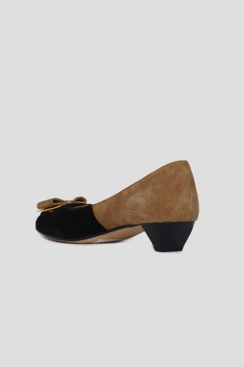 Детали: Женские коричнево-черные туфли из натуральной замши от Brunate (Брунейт). Закругленный декорированный носок, металлическая фурнитура, маленький каблук