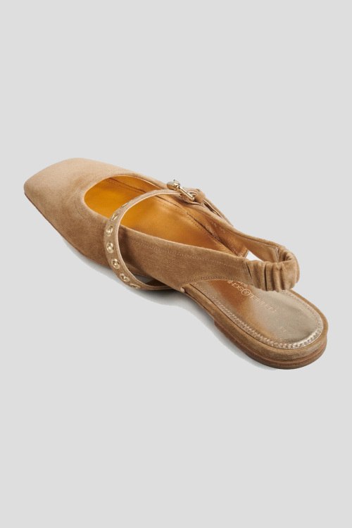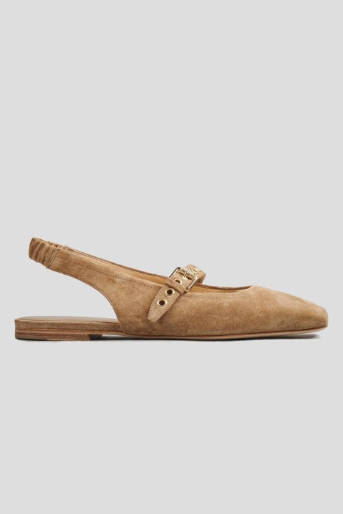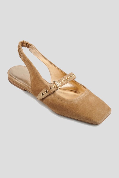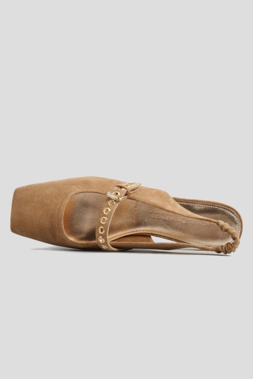 Детали: Женские светло-коричневые замшевые слингбэки от Kennel & Schmenger (Кеннел энд Шменгер). Квадратный носок, тонкий ремешок на заднике с эластичной вставкой, кожаная стелька с логотипом бренда, спереди ремешок с регулировкой. Высота каблука: 2 см