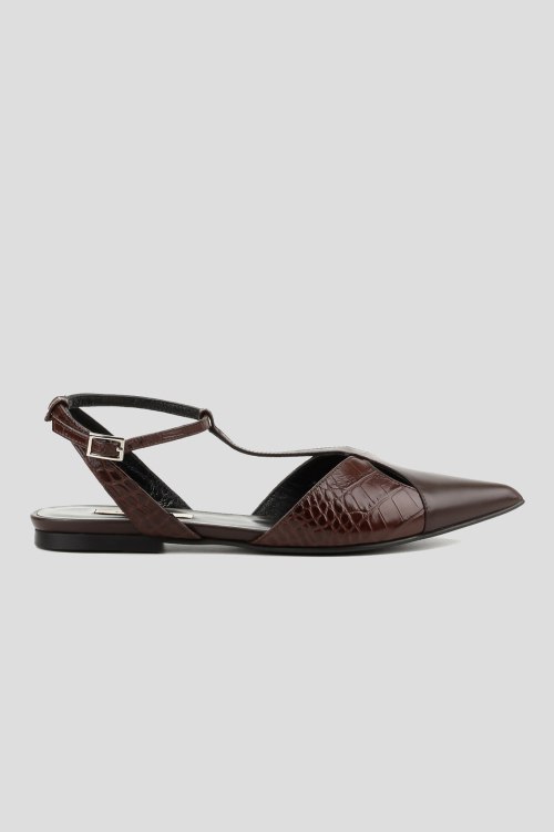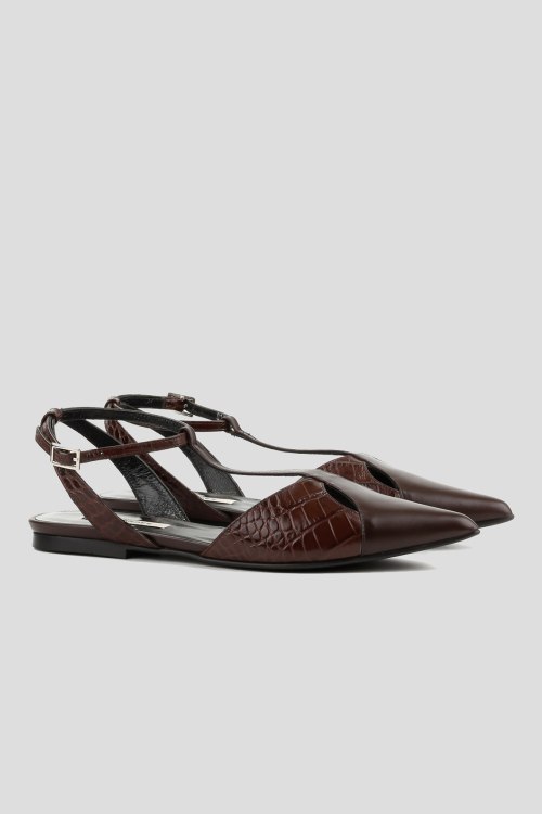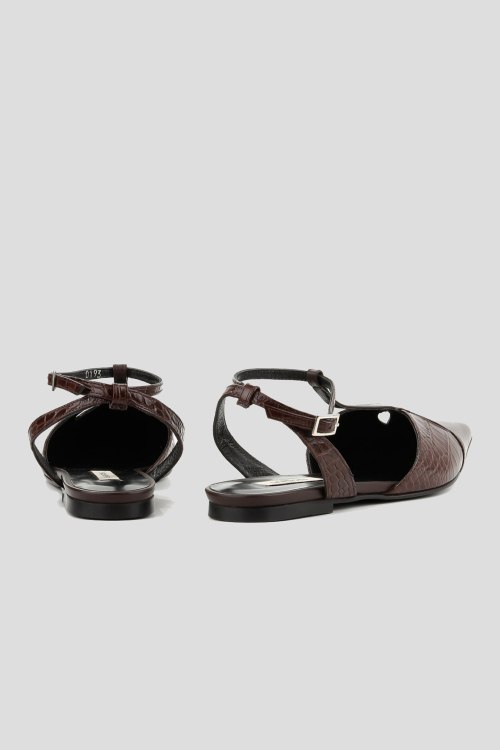 Детали: Женские коричневые кожаные слингбэки от Le Berdes (Ле Бердес). Тиснение под кожу крокодила, узкий носок, тонкий ремешок с пряжкой, плоская подошва. Замеры: длина стельки: размер 35 (23 см), 36 (23,5 см), 37 (24 см), 38 (24,5 см), 39 (25 см),40 (25,5)