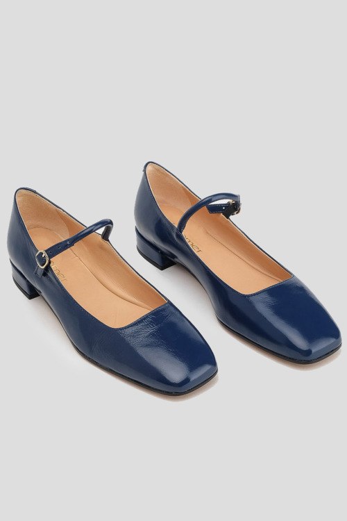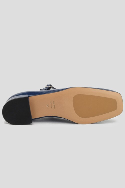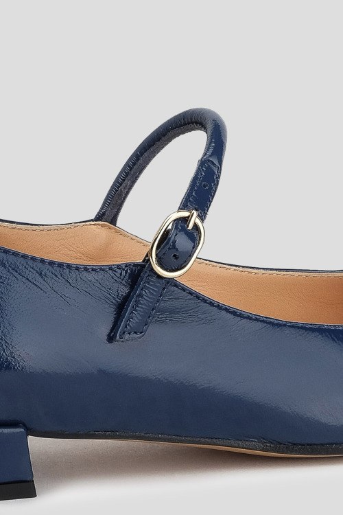 Детали: Женские темно-синие туфли из натуральной кожи от Jubile (Джубиле). Квадратный носок, кожаная стелька с логотипом, блочный каблук, тонкий регулируемый ремешок