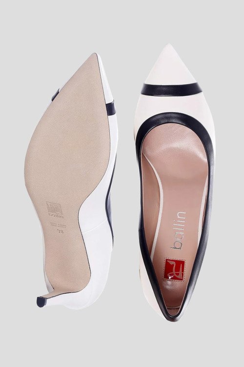 Детали: Женские белые кожаные туфли-лодочки от Ballin (Баллин). Модель из гладкой кожи, контрастная отделка, узкий носок, каблук-шпилька. Высота каблука: 9,5 см