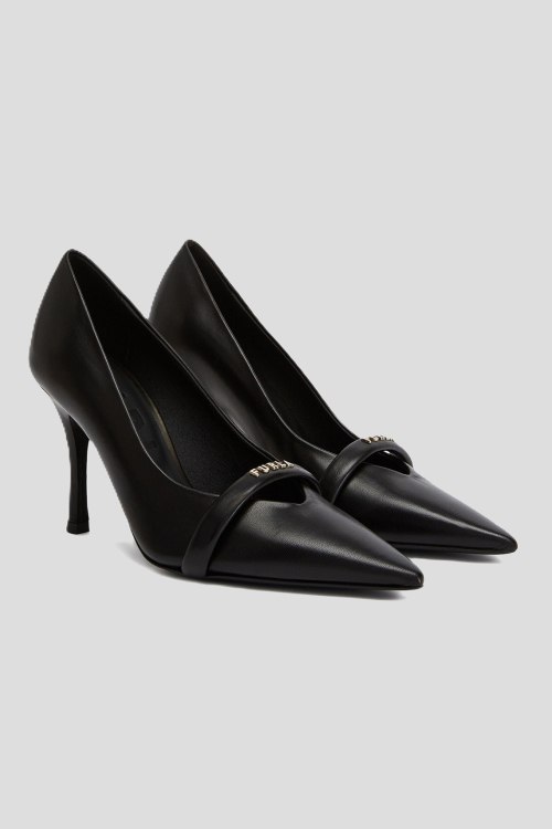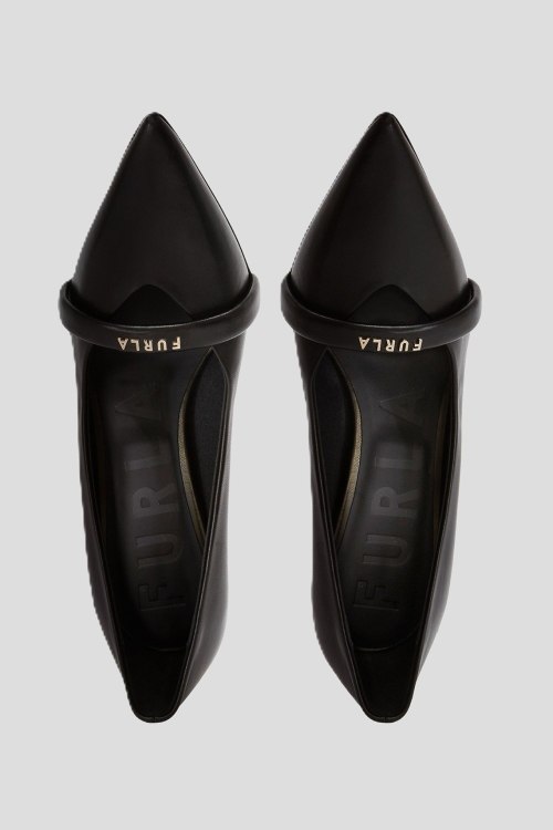 Детали: Женские черные кожаные туфли-лодочки Core от Furla (Фурла). Логотип спереди, узкий носок, каблук-шпилька, кожаная стелька. Высота каблука: 9 см