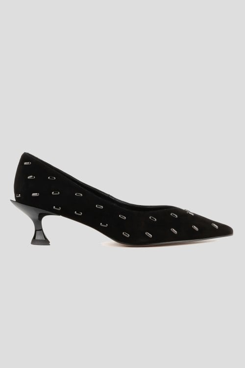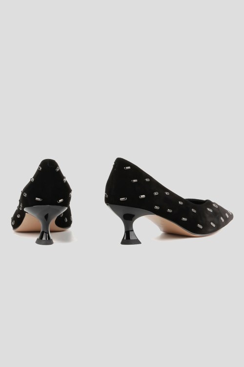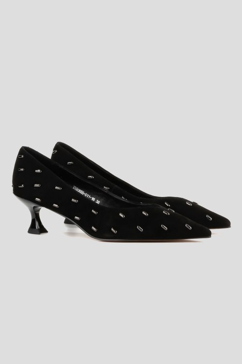 Детали: Женские черные замшевые туфли-лодочки от Le Berdes (Ле Бердес). Металлические декоративные элементы, узкий носок, кожаная стелька. Высота каблука: 5 см. Замеры: длина стельки: размер 35 (23 см), 36 (23,5 см), 37 (24 см), 38 (24,5 см), 39 (25 см),40 (25,5)