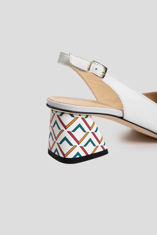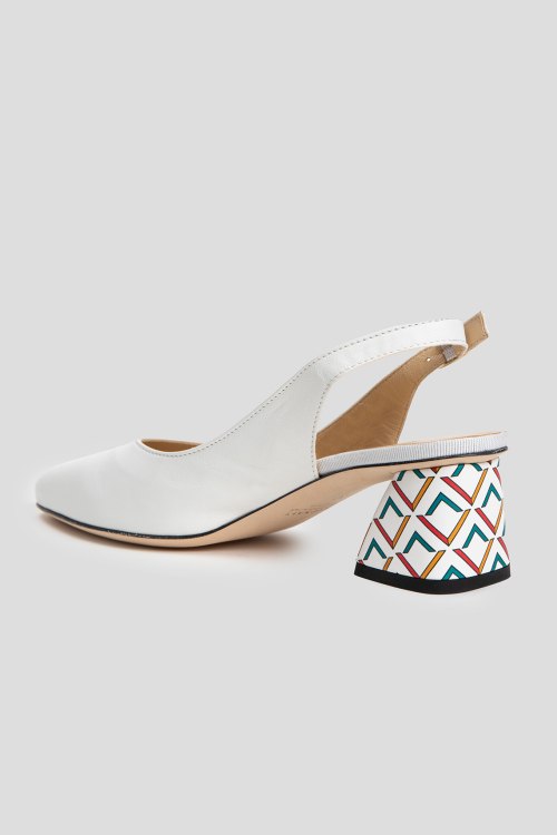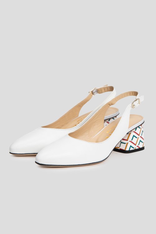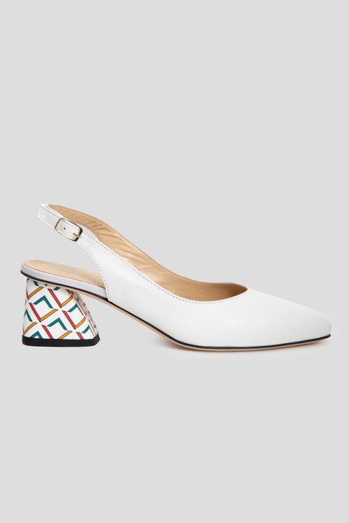 Детали: Женские белые туфли-слингбэки из натуральной кожи от Brunate (Брунате). Острый носок, кожаная стелька с логотипом бренда, регулируемый ремешок на заднике, широкий каблук 5 см