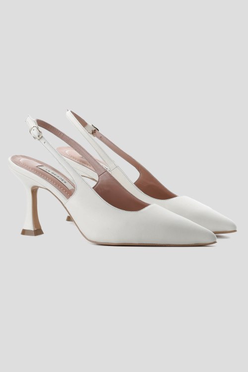 Детали: Женские белые кожаные слингбэки от Le Berdes (Ле Бердес). Модель из гладкой кожи, узкий носок, ремешок с пряжкой на пятке, каблук-рюмочка. Высота каблука: 8 см. Замеры: длина стельки: размер 35 (23 см), 36 (23,5 см), 37 (24 см), 38 (24,5 см), 39 (25 см),40 (25,5)