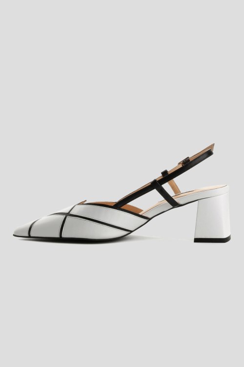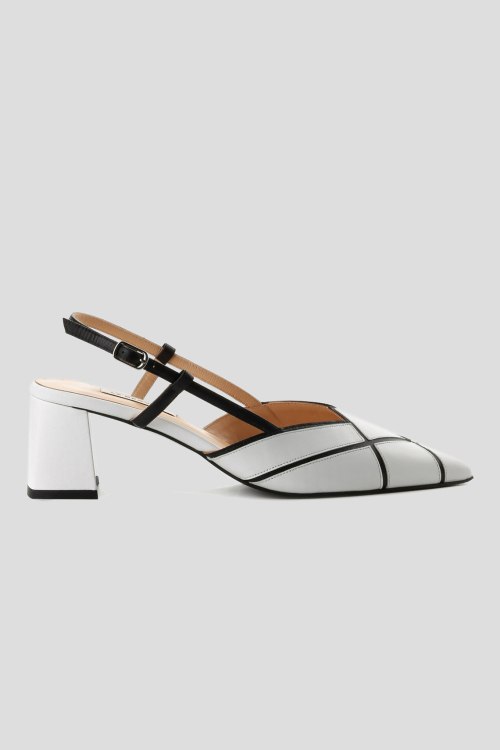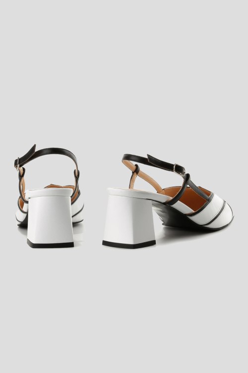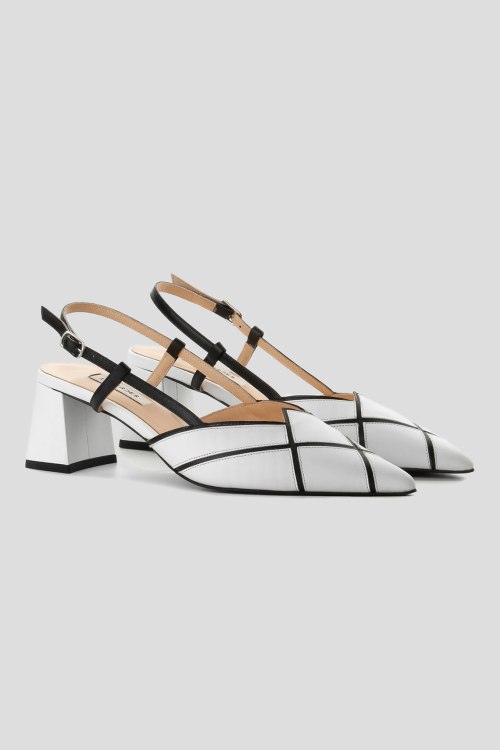 Детали: Женские белые кожаные слингбэки от Le Berdes (Ле Бердес). Модель из гладкой кожи, черные вставки, узкий носок, ремешок с пряжкой на пятке, широкий каблук. Высота каблука: 6 см. Замеры: длина стельки: размер 35 (23 см), 36 (23,5 см), 37 (24 см), 38 (24,5 см), 39 (25 см),40 (25,5)