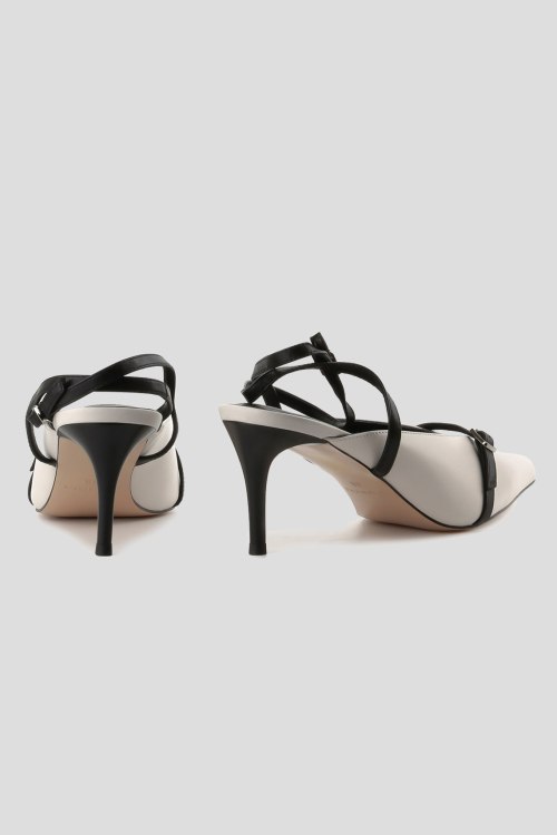 Детали: Женские белые кожаные слингбэки от Le Berdes (Ле Бердес). Модель из гладкой кожи, ремешки с пряжками, узкий носок, каблук-шпилька. Высота каблука: 7 см. Замеры: длина стельки: размер 35 (23 см), 36 (23,5 см), 37 (24 см), 38 (24,5 см), 39 (25 см),40 (25,5)