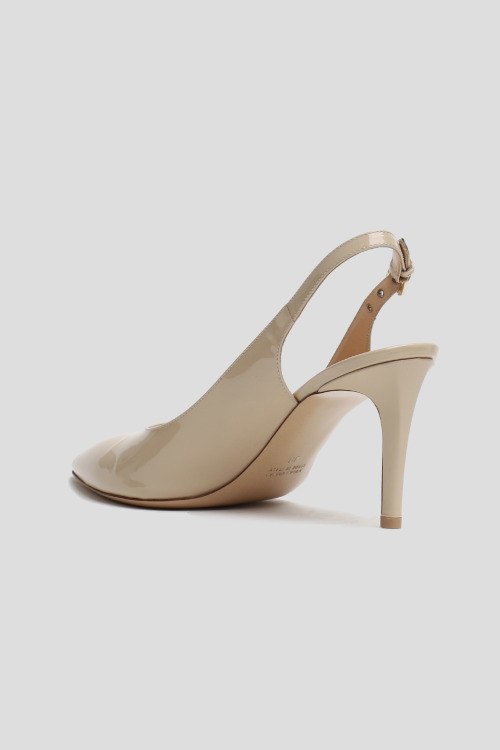 Детали: Женские пудровые слингбэки из лаковой кожи от Dyva (Дива). Острый носок, высокий каблук-шпилька, застежка на тонкий регулируемый ремешок на щиколотке, кожаная стелька с логотипом бренда. Измерения: высота каблука: 8 см (на размер 38)