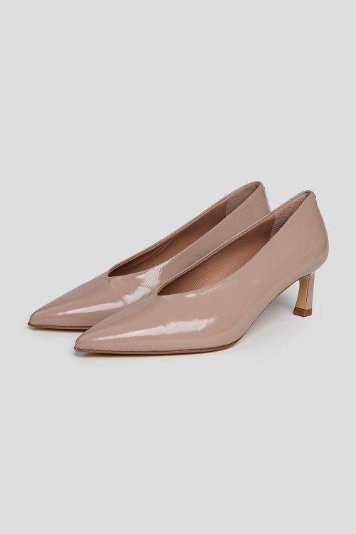 Детали: Женские темно-бежевые туфли из натуральной лаковой кожи от Halmanera (Халманера). Острый носок, кожаная стелька, каблук-шпилька. Измерения: каблук 6 см