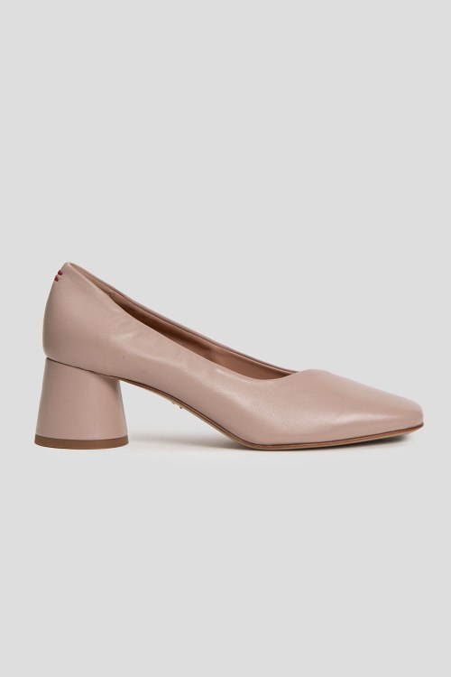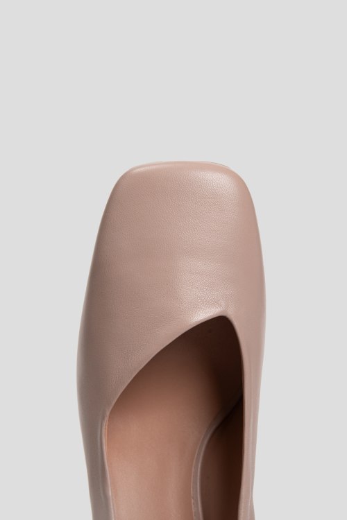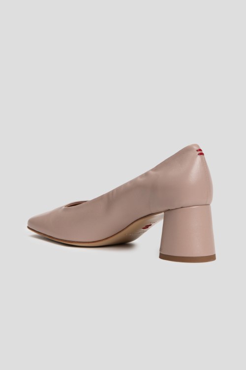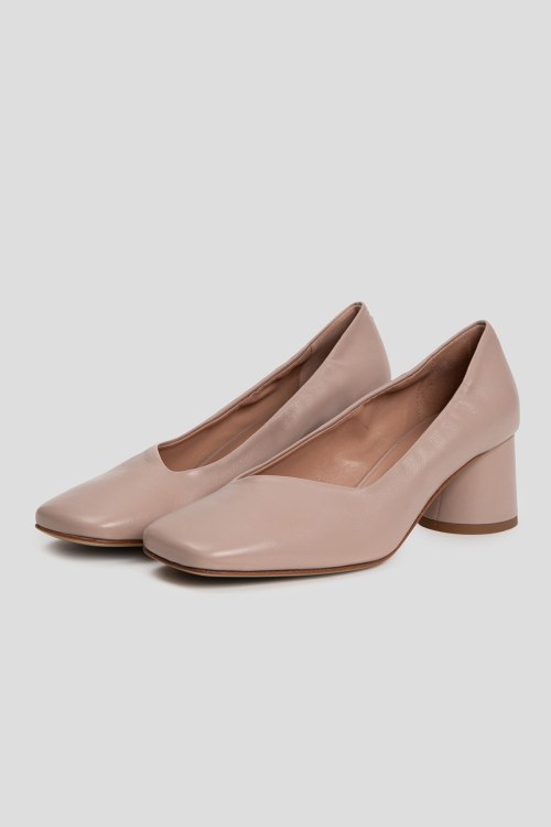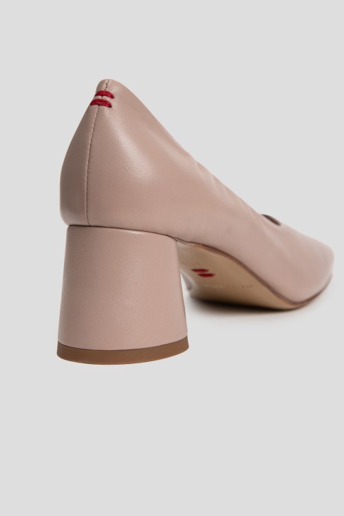 Детали: Женские пудровые туфли из натуральной кожи от Halmanera (Халманера). Квадратный носок, кожаная стелька с логотипом, высокий широкий каблук высотой 5,5 см