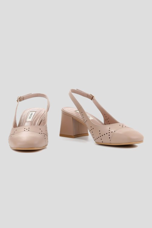 Детали: Женские бежевые кожаные слингбэки от Le Berdes (Ле Бердес). Модель из гладкой кожи, дизайн с перфорацией, закругленный носок, ремешок с пряжкой на пятке, широкий каблук. Высота каблука: 6 см. Замеры: длина стельки: размер 35 (23 см), 36 (23,5 см), 37 (24 см), 38 (24,5 см), 39 (25 см),40 (25,5)