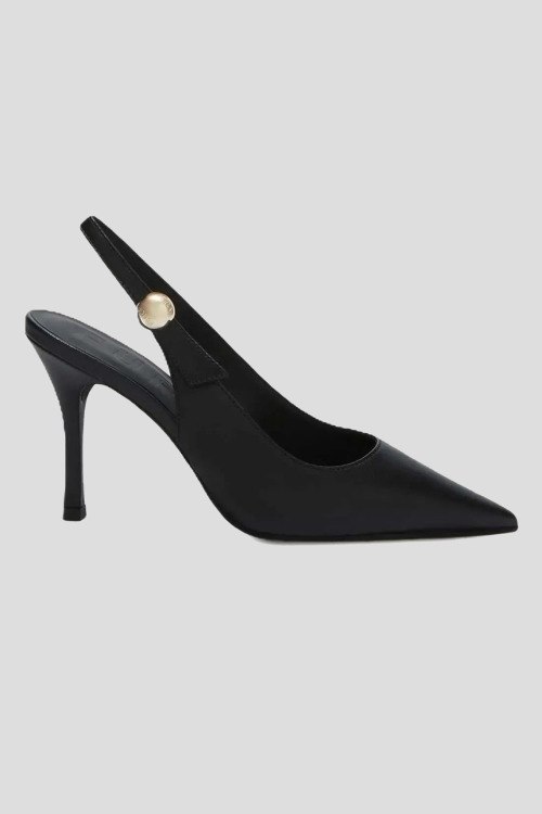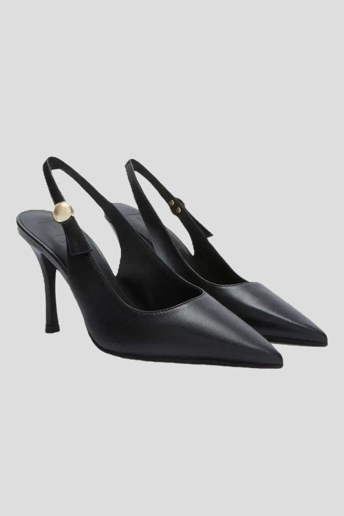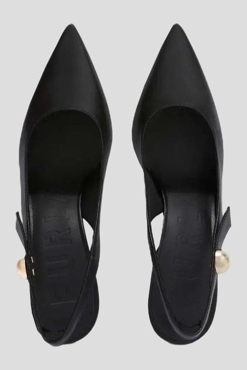 Детали: Женские черные кожаные слингбэки Sfera от Furla (Фурла). Модель из гладкой кожи, золотистая фурнитура, узкий носок, ремешок на пятке, каблук-шпилька. Высота каблука: 9 см