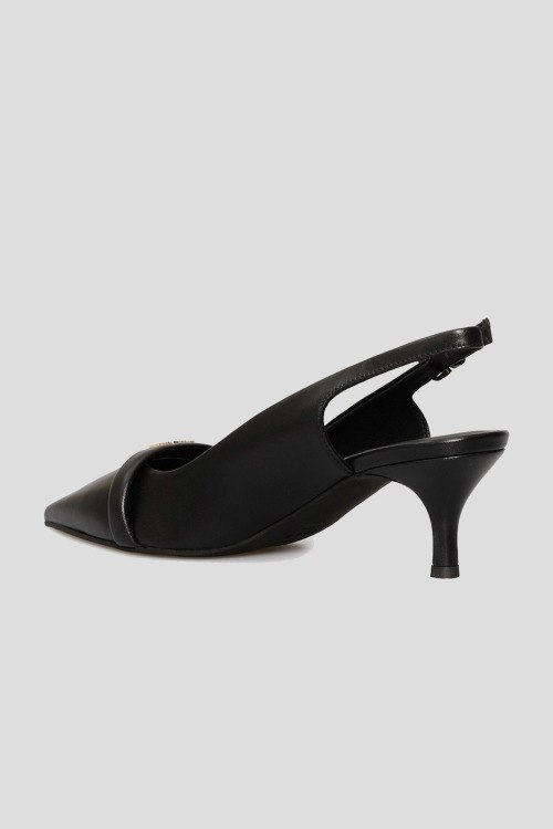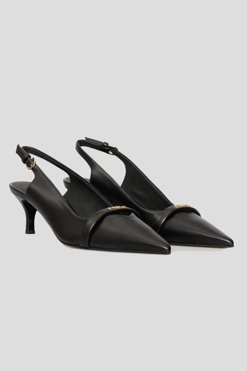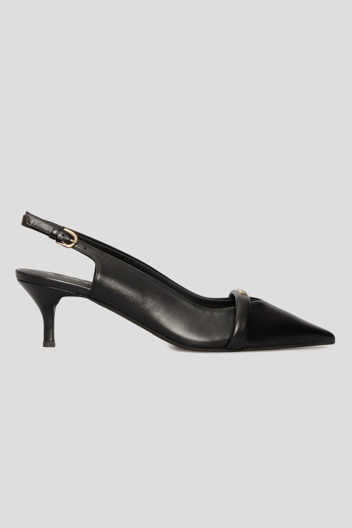 Детали: Женские черные кожаные слингбэки Core от Furla (Фурла). Модель из гладкой кожи, значок логотипа, узкий носок, ремешок с пряжкой на пятке, каблук-шпилька. Высота каблука: 6 см
