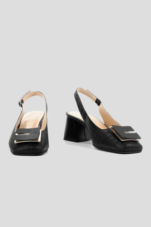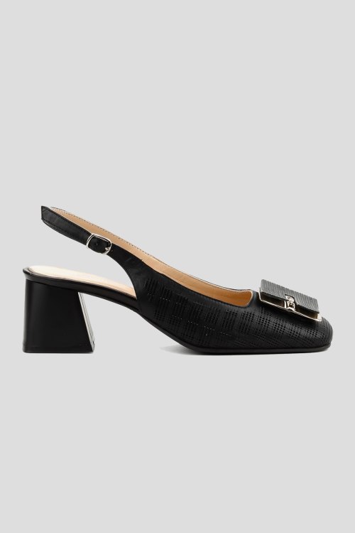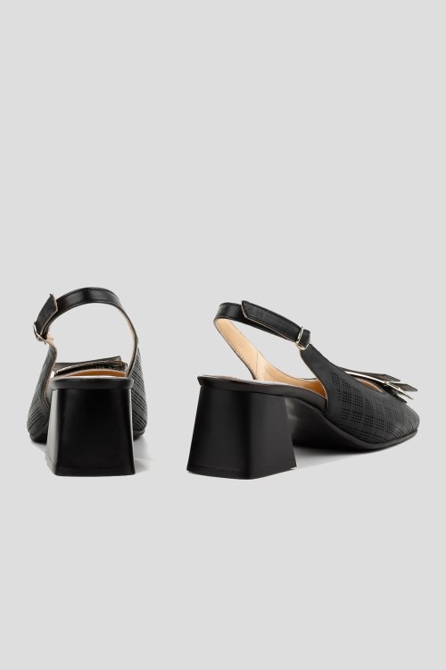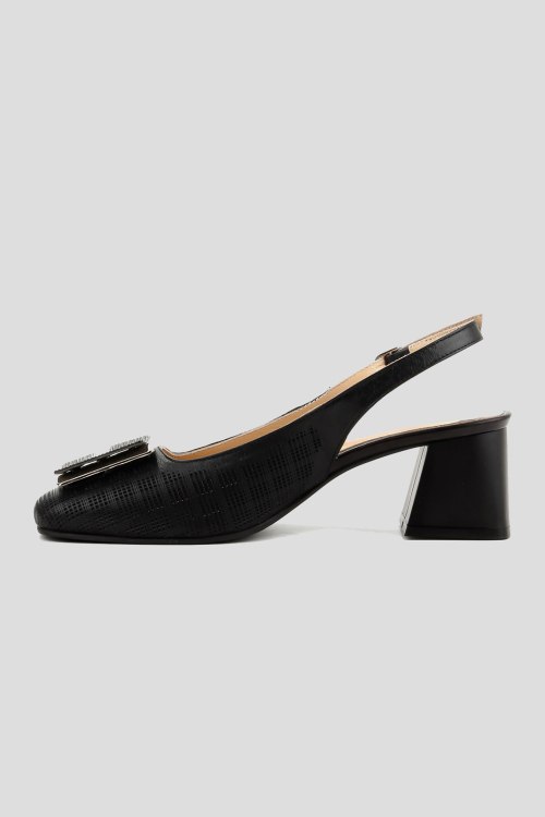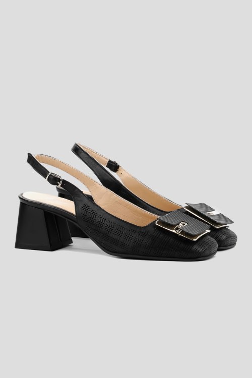 Детали: Женские черные кожаные слингбэки от Le Berdes (Ле Бердес). Модель из гладкой кожи, дизайн с перфорацией, квадратный носок с декором, широкий каблук, ремешок с пряжкой на пятке. Замеры: длина стельки: размер 35 (23 см), 36 (23,5 см), 37 (24 см), 38 (24,5 см), 39 (25 см),40 (25,5)