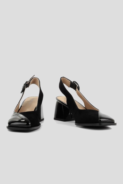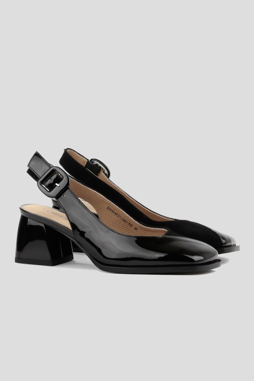 Детали: Женские черные лаковые слингбэки от Le Berdes (Ле Бердес). Модель из гладкой лаковой кожи, квадратный носок, широкий каблук, ремешок с пряжкой на пятке. Высота каблука: 6 см. Замеры: длина стельки: размер 35 (23 см), 36 (23,5 см), 37 (24 см), 38 (24,5 см), 39 (25 см),40 (25,5)
