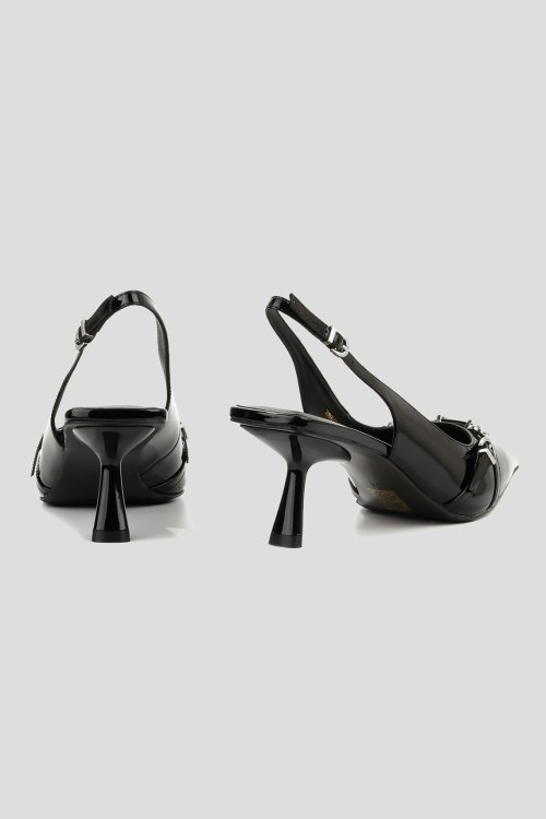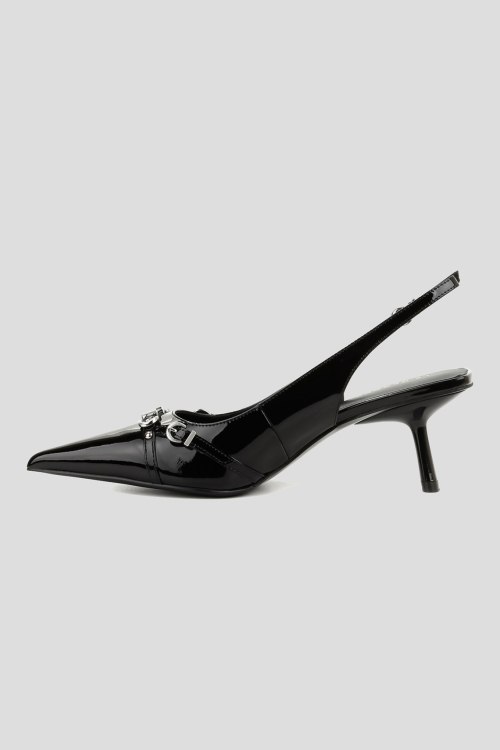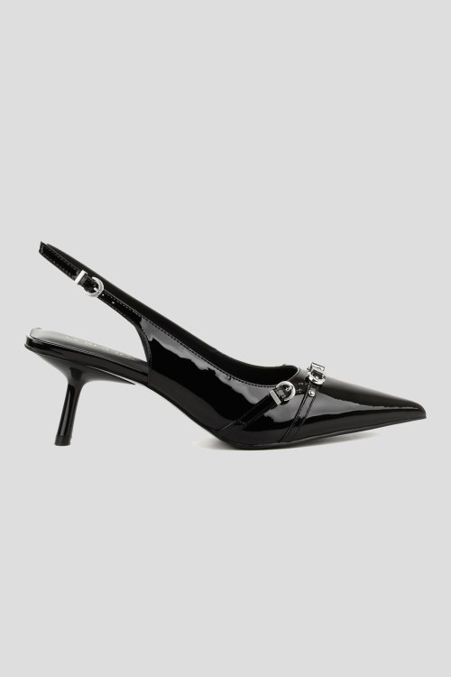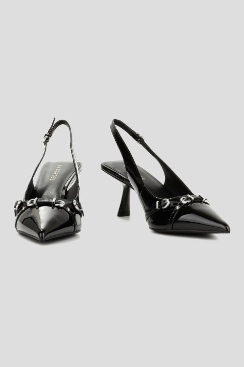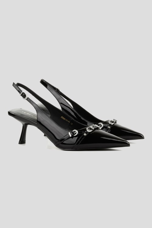 Детали: Женские черные лаковые слингбэки от Le Berdes (Ле Бердес). Глянцевый эффект, ремешки с серебристыми пряжками, узкий носок, каблук-шпилька. Замеры: длина стельки: размер 35 (23 см), 36 (23,5 см), 37 (24 см), 38 (24,5 см), 39 (25 см),40 (25,5)