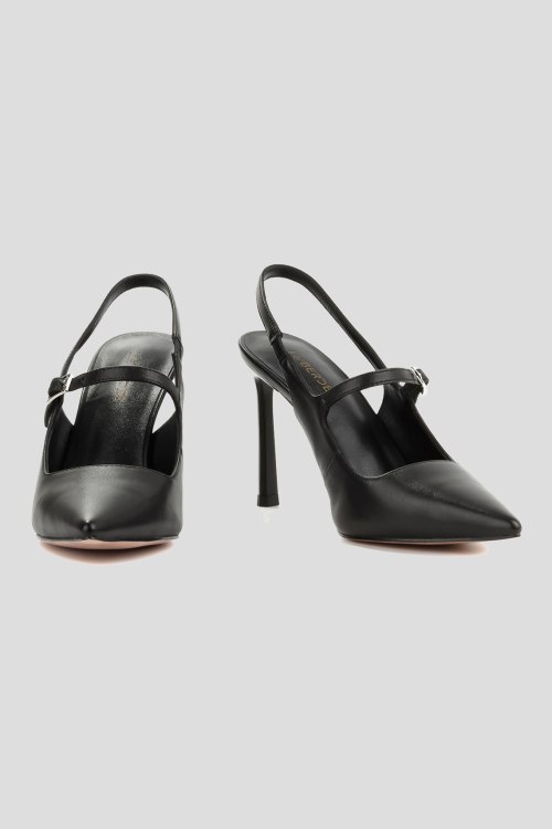 Детали: Женские черные кожаные слингбэки от Le Berdes (Ле Бердес). Модель из гладкой кожи, узкий носок, ремешок на пятке, каблук-шпилька. Высота каблука: 9 см. Замеры: длина стельки: размер 35 (23 см), 36 (23,5 см), 37 (24 см), 38 (24,5 см), 39 (25 см),40 (25,5)