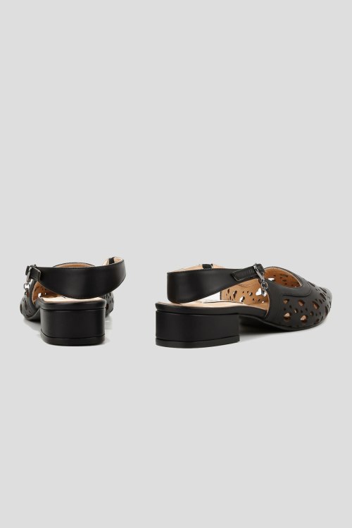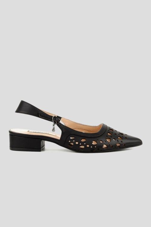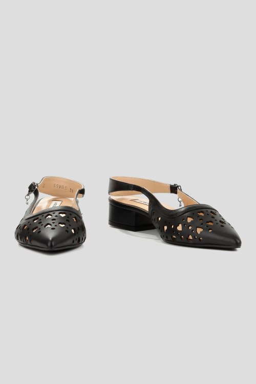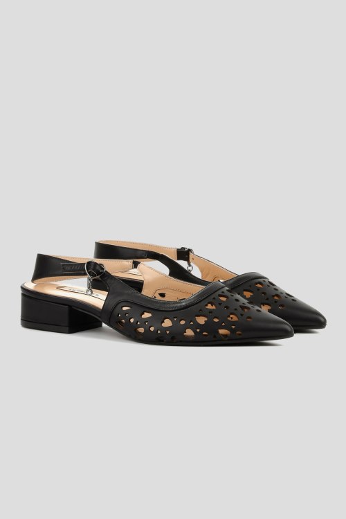 Детали: Женские черные кожаные слингбэки от Le Berdes (Ле Бердес). Модель из гладкой кожи, вырезной узор, узкий носок, ремешок с пряжкой на пятке, кожаная стелька. Замеры: длина стельки: размер 35 (23 см), 36 (23,5 см), 37 (24 см), 38 (24,5 см), 39 (25 см),40 (25,5)