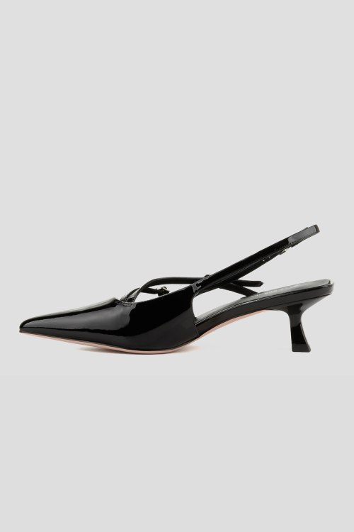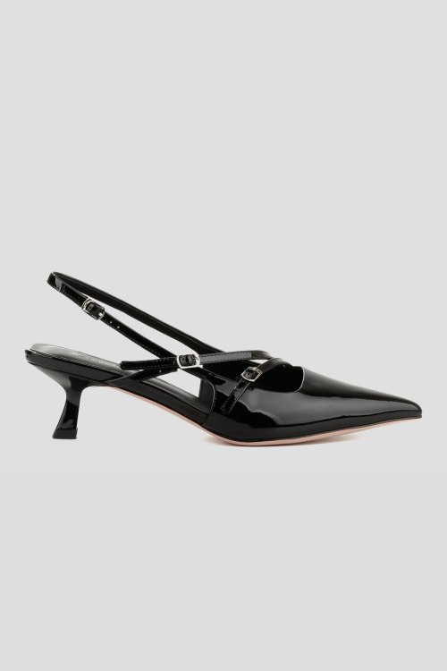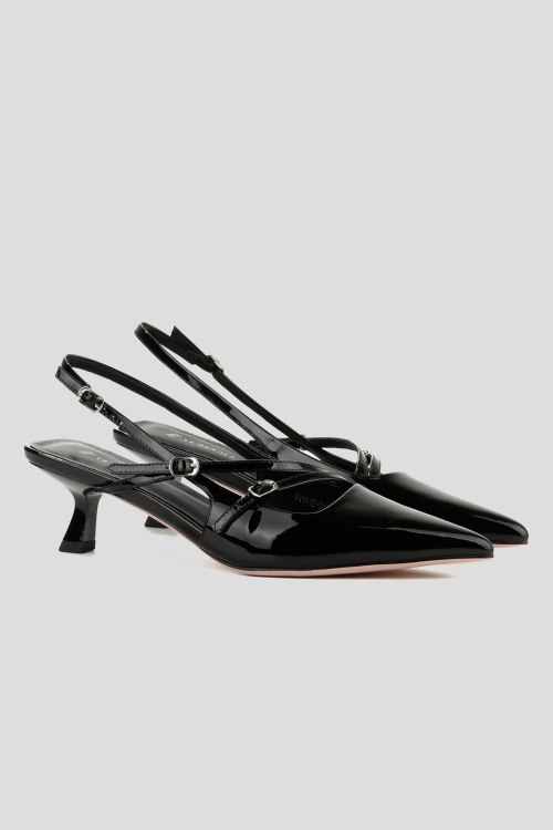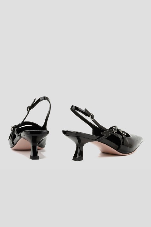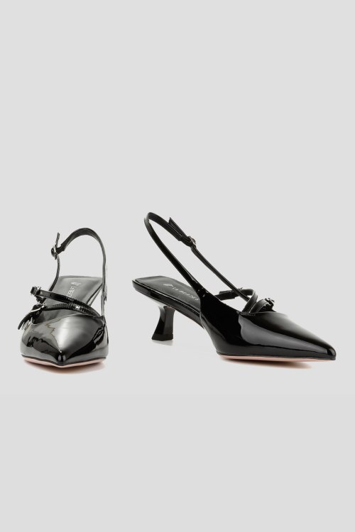 Детали: Женские черные лаковые слингбэки от Le Berdes (Ле Бердес). Модель из гладкой кожи с глянцевым эффектом, тонкие ремешки с пряжками, узкий носок, кожаная стелька. Высота каблука: 5 см. Замеры: длина стельки: размер 35 (23 см), 36 (23,5 см), 37 (24 см), 38 (24,5 см), 39 (25 см),40 (25,5)