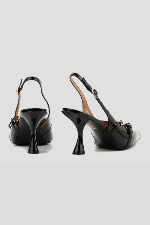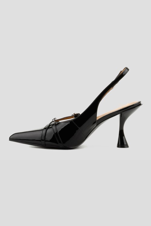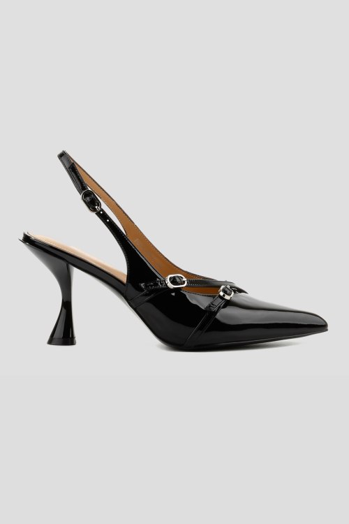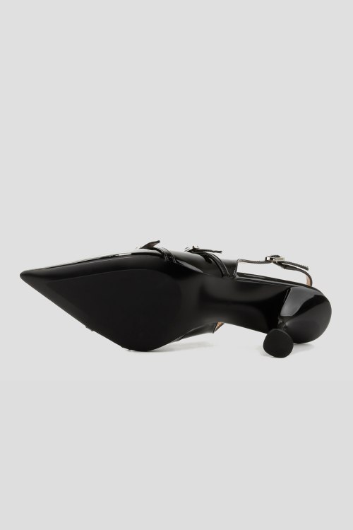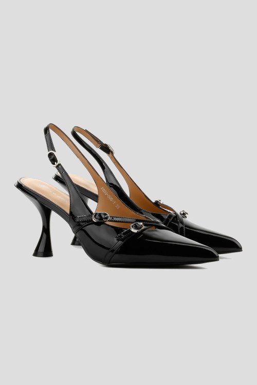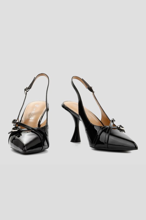 Детали: Женские черные лаковые слингбэки от Le Berdes (Ле Бердес). Модель из гладкой кожи с глянцевым эффектом, тонкие ремешки с пряжками, узкий носок, каблук-шпилька, кожаная стелька. Высота каблука: 8 см. Замеры: длина стельки: размер 35 (23 см), 36 (23,5 см), 37 (24 см), 38 (24,5 см), 39 (25 см),40 (25,5)