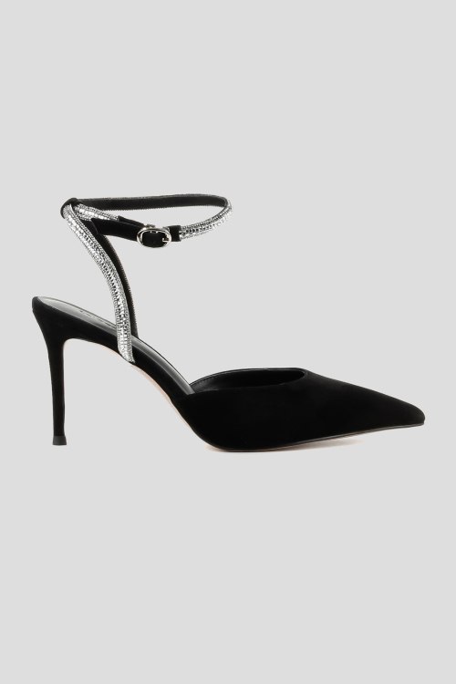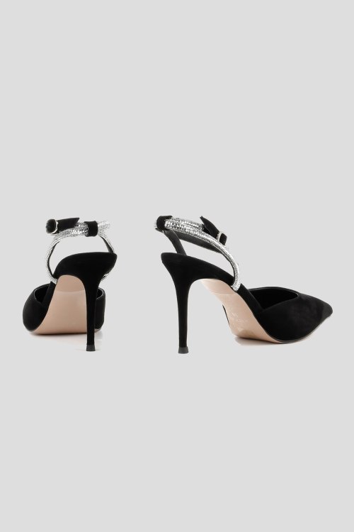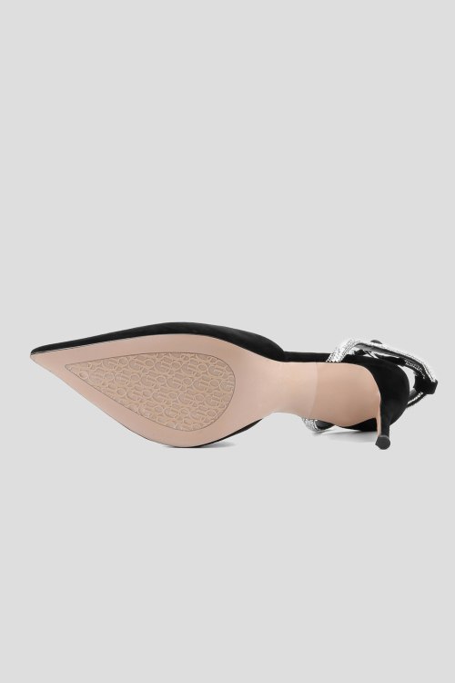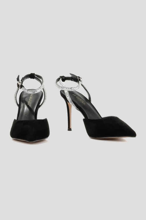 Детали: Женские черные замшевые слингбэки от Le Berdes (Ле Бердес). Тонкий ремешок декорирован стразами, узкий носок, каблук-шпилька, кожаная стелька. Высота каблука: 8 см. Замеры: длина стельки: размер 35 (22,5 см), 36 (23 см), 37 (23,5 см), 38 (24,5 см), 39 (25 см),40 (25,5)