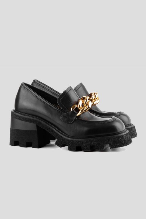 Детали: Женские черные туфли на каблуке из натуральной кожи от Le Berdes (Ле Бердес). Закругленный носок, спереди ремешок в тон изделия с золотистой цепью, массивная подошва на каблуке, стелька из натуральной кожи. Измерения: высота каблука: 8 см