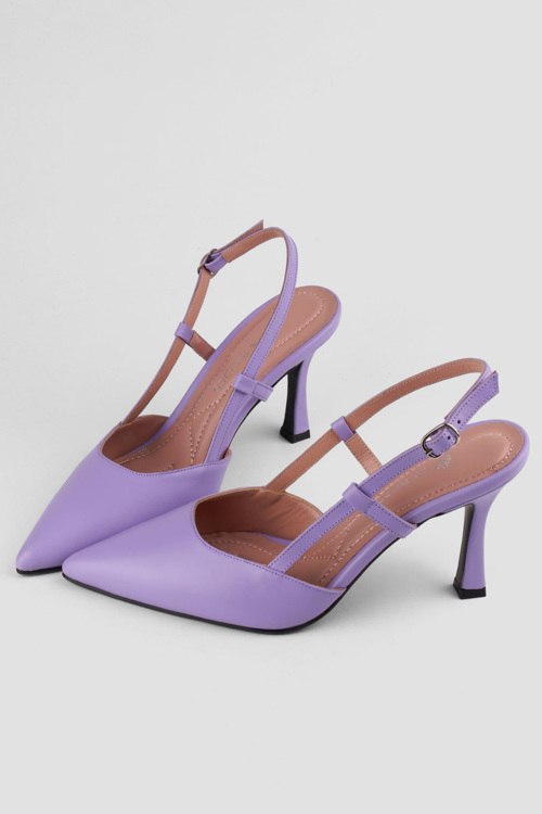 Детали: Женские сиреневые кожаные слингбэки от Le Berdes (Ле Бердес). Модель из гладкой кожи, острый носок, тонкий ремешок с пряжкой на пятке, каблук-шпилька, кожаная стелька. Полнота модели: средняя. Высота каблука: 9 см. Замеры стельки: р.36 (23,5 см),р.37 (24 см),р.38 (24,5 см),р.39 (25 см),р.40 (25,5 см)