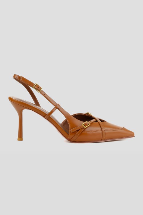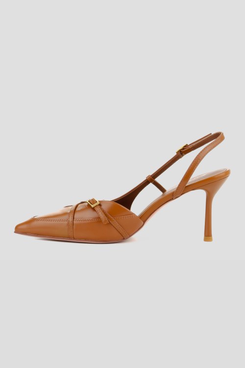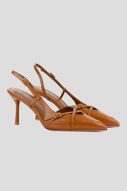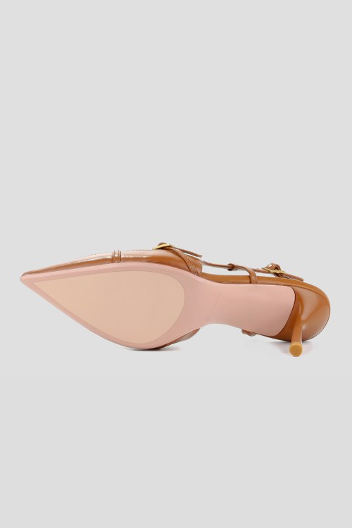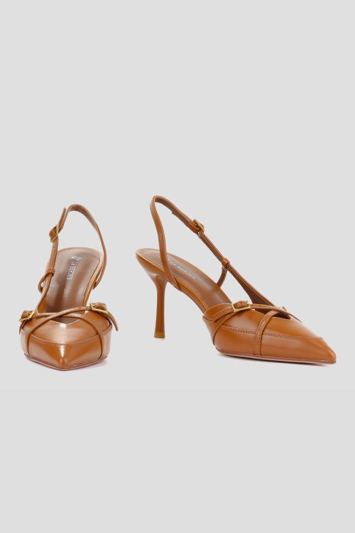 Детали: Женские рыжие кожаные слингбэки от Le Berdes (Ле Бердес). Модель из гладкой кожи, золотистая фурнитура, ремешок с пряжкой на пятке, узкий носок, каблук-шпилька, кожаная стелька. Высота каблука: 8 см. Замеры: длина стельки: размер 35 (23 см), 36 (23,5 см), 37 (24 см), 38 (24,5 см), 39 (25 см),40 (25,5)