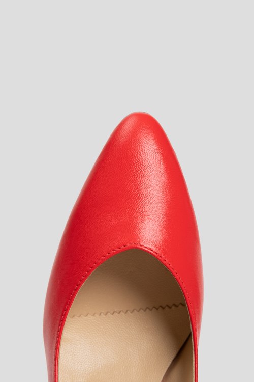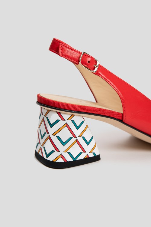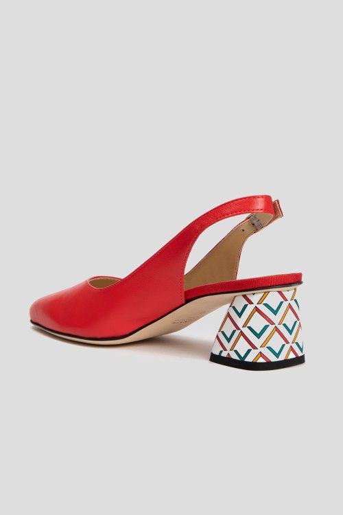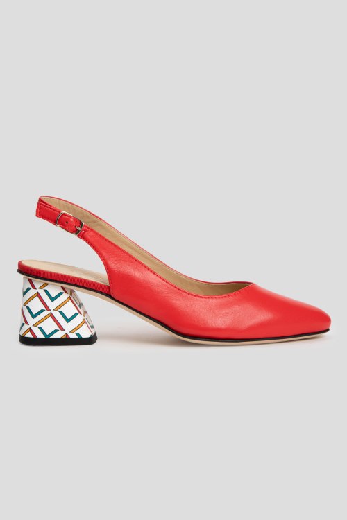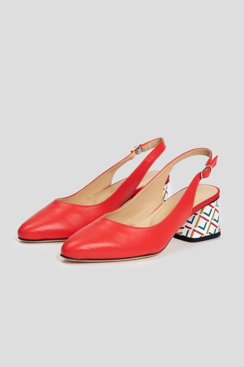 Детали: Женские красные туфли-слингбэки из натуральной кожи от Brunate (Брунате). Острый носок, кожаная стелька с логотипом бренда, регулируемый ремешок на щиколотке, широкий каблук высотой 5 см