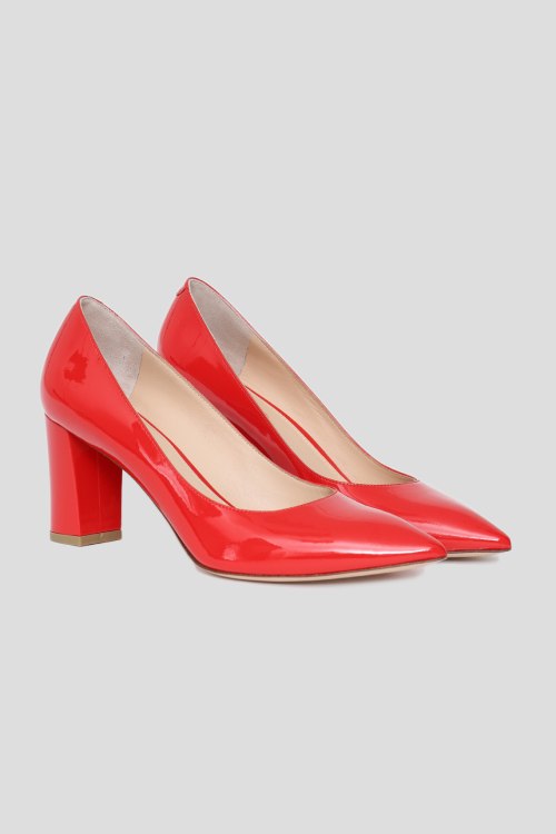 Детали: Женские красные туфли из натуральной лаковой кожи от Dyva (Дива). Зауженный носок, широкий каблук, кожаная стелька. Измерения: высота каблука: 7,5 см (на размер 38)