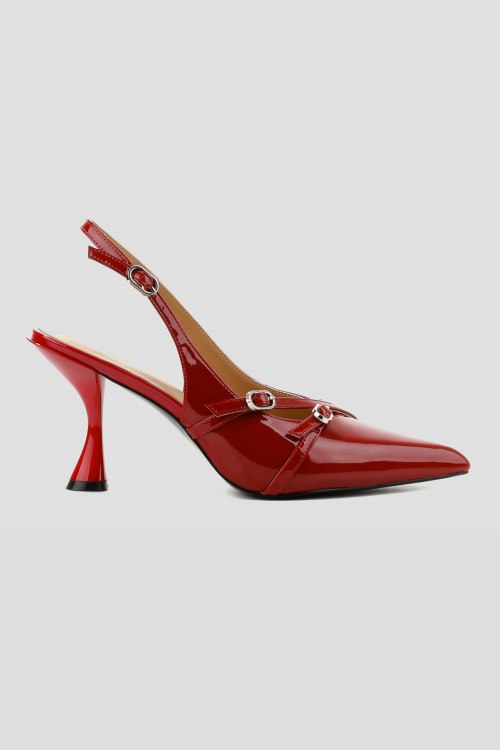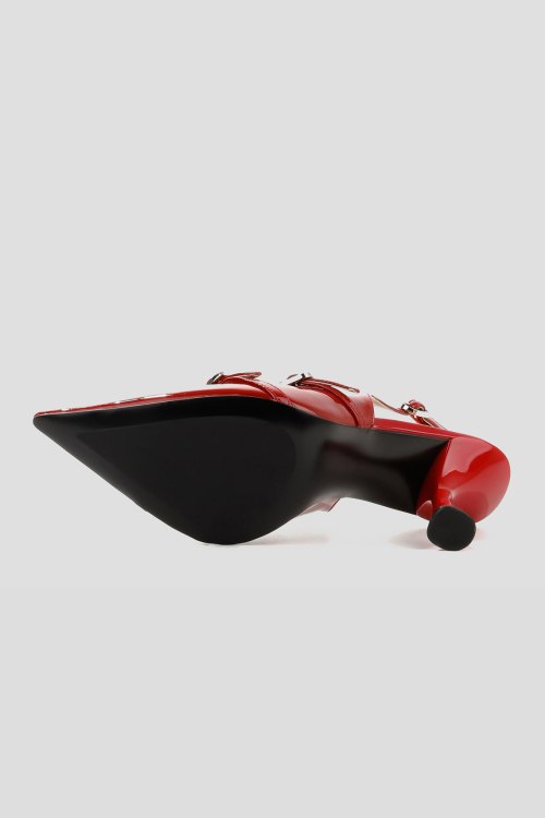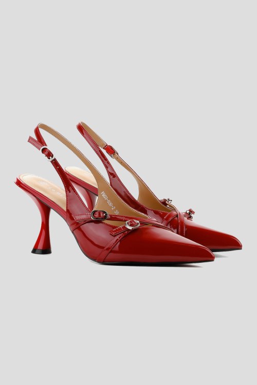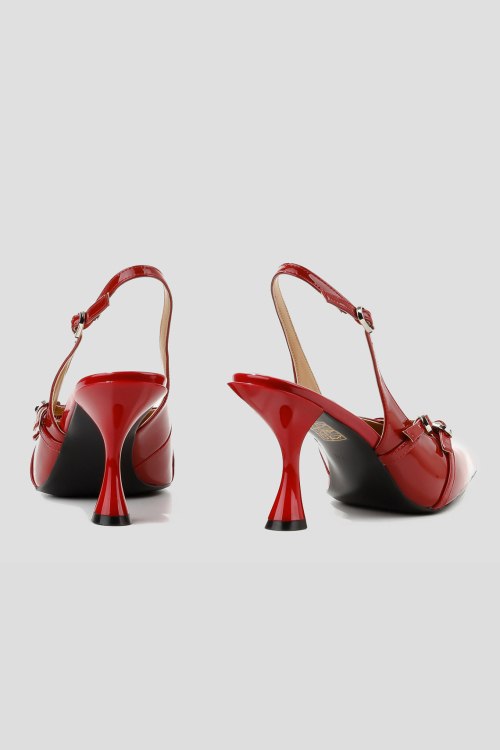 Детали: Женские красные лаковые слингбэки от Le Berdes (Ле Бердес). Модель из гладкой кожи с глянцевым эффектом, тонкие ремешки с пряжками, узкий носок, каблук-шпилька, кожаная стелька. Высота каблука: 8 см. Замеры: длина стельки: размер 35 (23 см), 36 (23,5 см), 37 (24 см), 38 (24,5 см), 39 (25 см),40 (25,5)