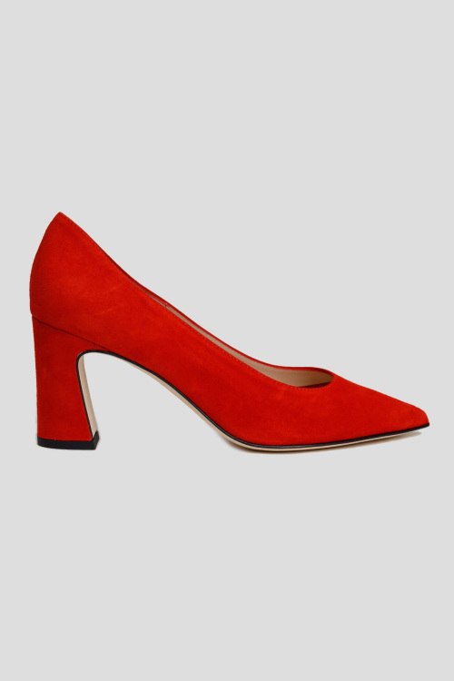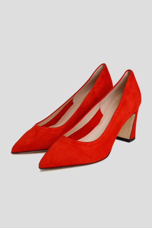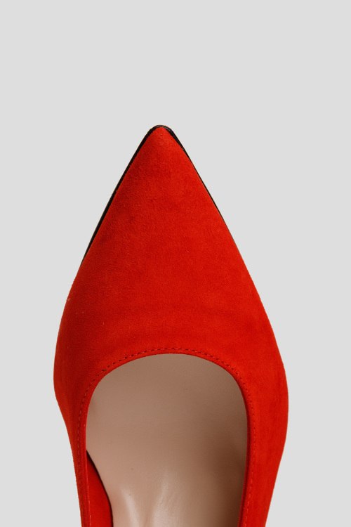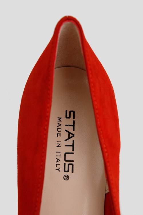 Детали: Женские красные туфли из натуральной замши от Status (Статус). Острый носок, стелька из натуральной кожи, высокий устойчивый каблук