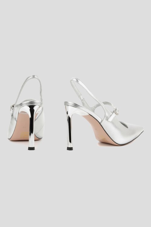 Детали: Женские серебристые кожаные туфли-слингбэки от Le Berdes (Ле Бердес). Острый носок, высокий каблук-шпилька: 9 см, тонкие ремешки, кожаная стелька. Замеры: длина стельки: размер 35 (23 см), 36 (23,5 см), 37 (24 см), 38 (24,5 см), 39 (25 см),40 (25,5)