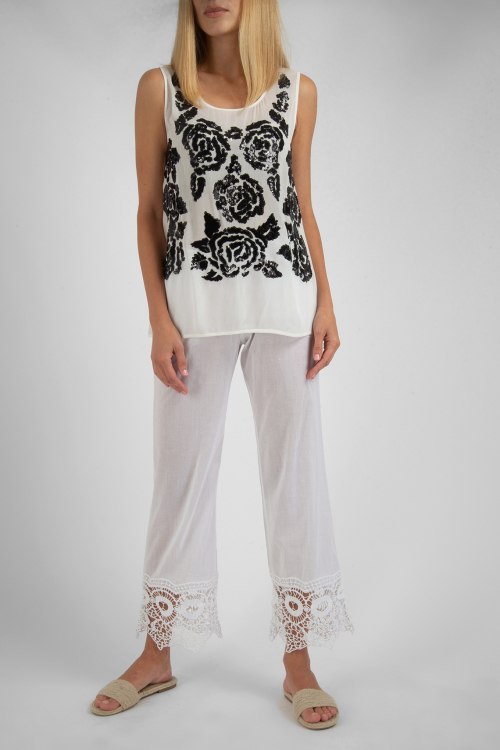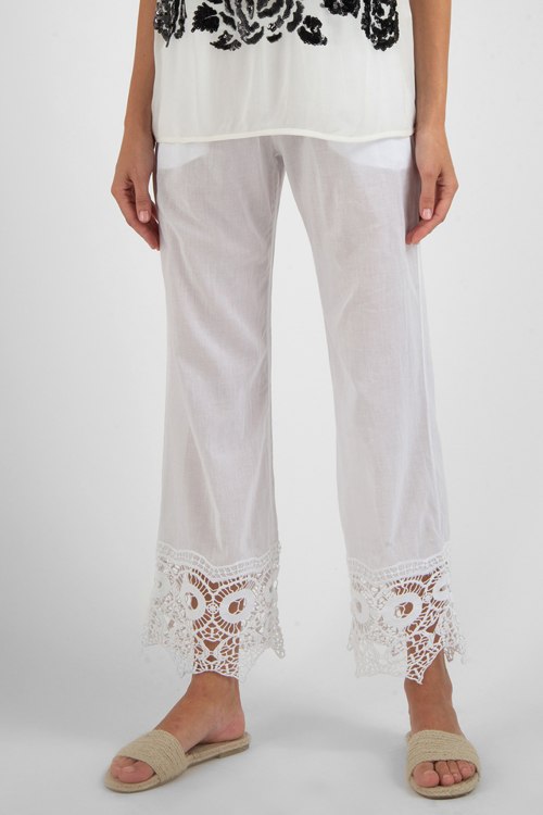 Белые хлопковые брюки. Легкая летняя модель, внизу декор кружевом.