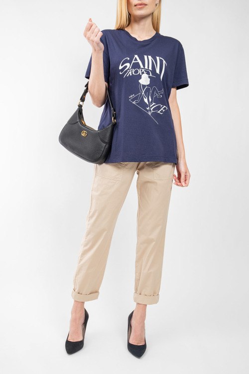 Женские бежевые хлопковые брюки от Deha (Деха). Эластичный пояс на завязках, боковые и задние карманы, нашивка с логотипом сзади, укороченная длина.