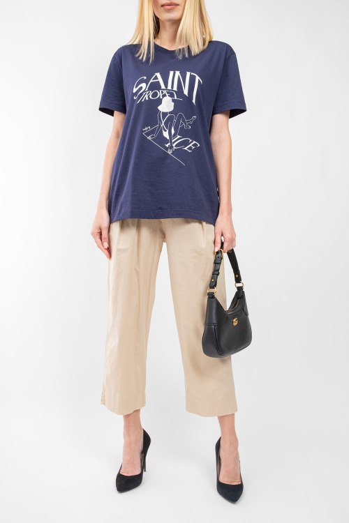 Женские бежевые хлопковые брюки от Deha (Деха). Эластичный пояс на завязках, нашивка с логотипом сзади, боковые карманы, укороченная длина.