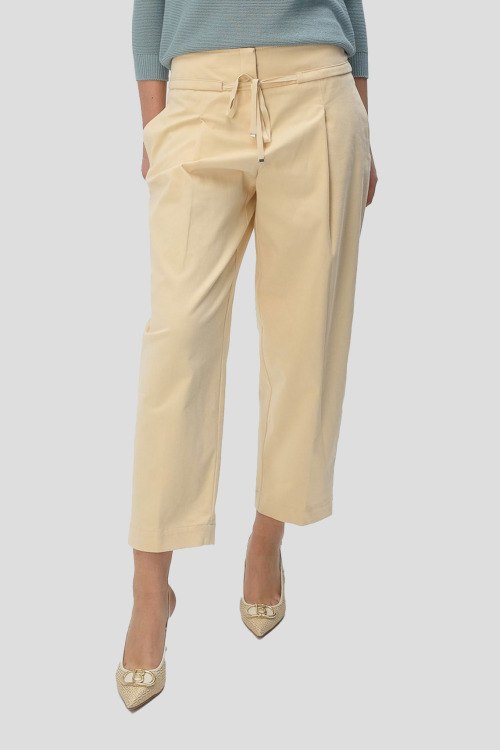 Детали: Женские бежевые хлопковые брюки Takane от Hugo Boss (Хуго Босс). В поясе на завязках, боковые карманы, один карман сзади, укороченная длина