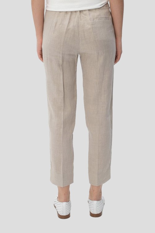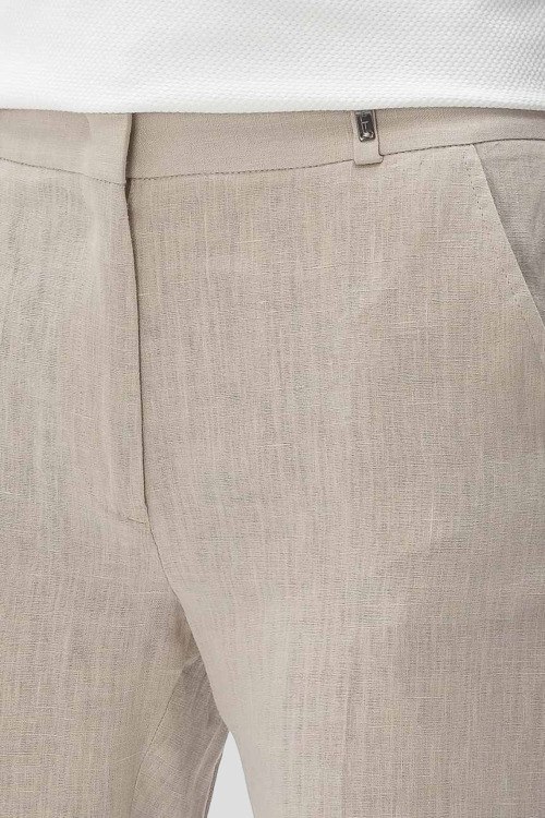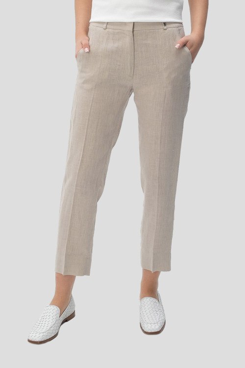 Детали: Женские песочные льняные брюки от Tonet (Тонет). Дизайн со стрелками, боковые карманы, пояс с петлями для ремня, укороченная длина