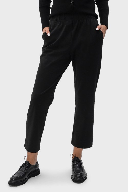 Детали: Женские черные брюки из лиоцелла и хлопка Elfo от Max Mara Weekend (Макс Мара Викенд). Эластичный пояс, боковые карманы, прямой крой, укороченная длина