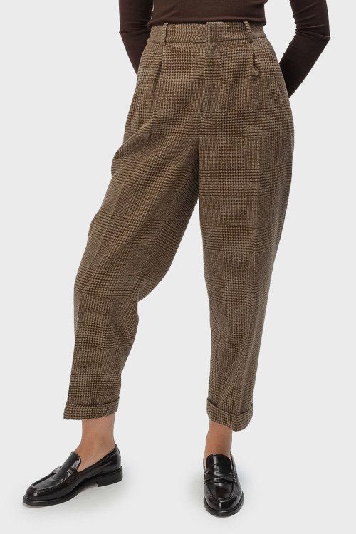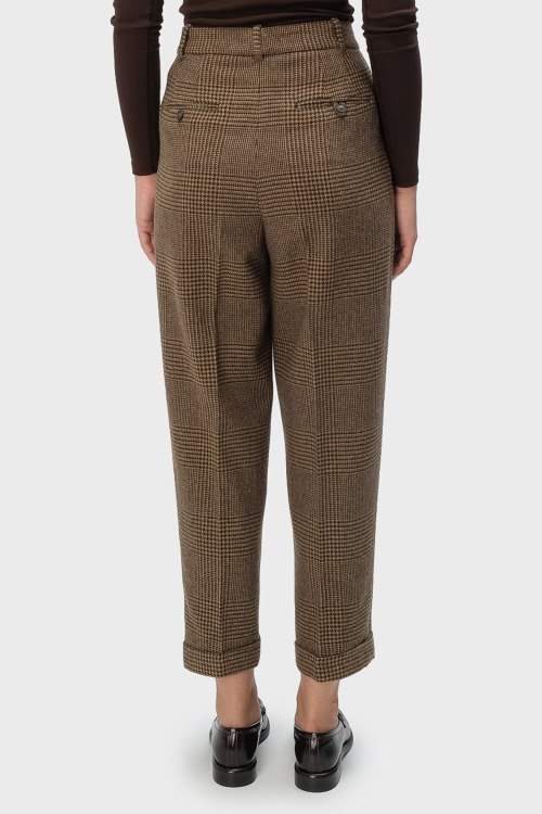 Детали: Женские коричневые брюки из шерстяного микса от Ralph Lauren (Ральф Лорен). Укороченная модель, высокая посадка, застежка на молнию и пуговицу, прорезные карманы, петли в поясе для ремня