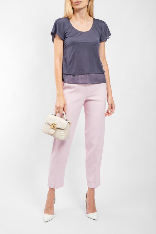 Детали: Женские розовые брюки из вискозы от Emporio Armani (Эмпорио Армани). Боковые карманы, внизу на замочках, прямой крой, полная длина