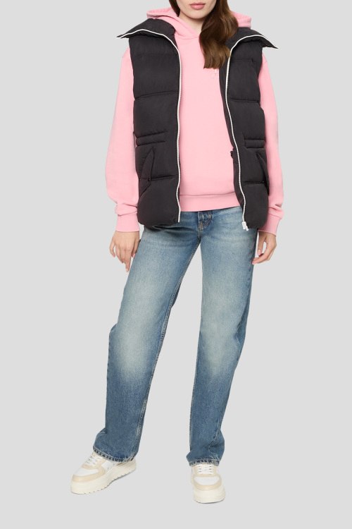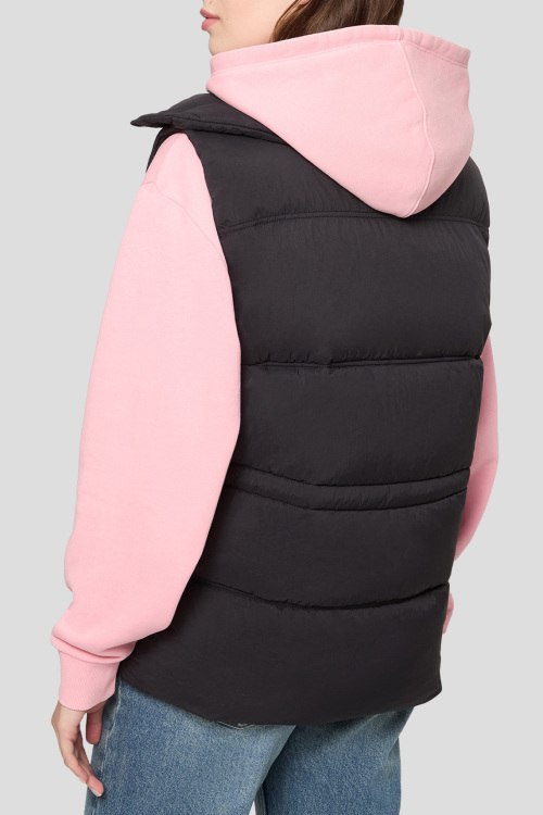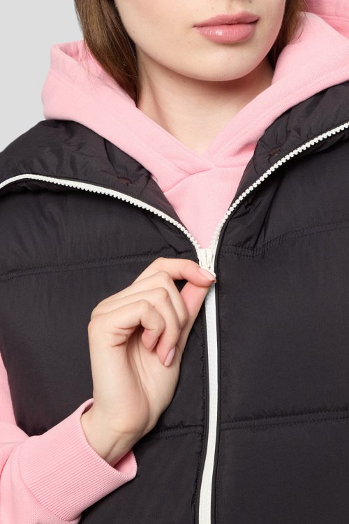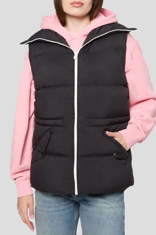 Детали: Женский черный утепленный жилет Falerie от Hugo by Hugo Boss (Хуго бай Хуго Босс). Стеганый дизайн, высокий воротник, боковые карманы на кнопке, застежка-молния, синтетический наполнитель, классическая длина