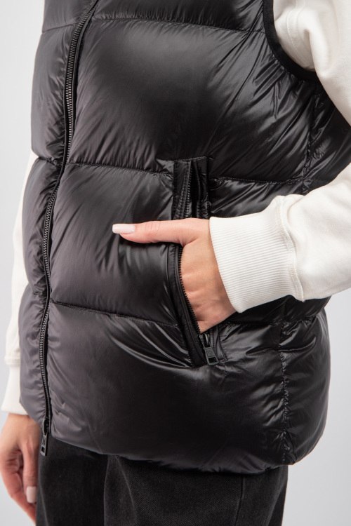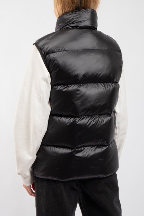 Детали: Женский черный жилет на пуху Sumido от Moncler (Монклер). Стеганый дизайн, высокий воротник, нашивка с логотипом на груди, боковые карманы на молнии, застежка-молния, классическая длина, наполнитель из микса пуха и пера. Комплектация: фирменные коробка, кофр, подарочный пакет