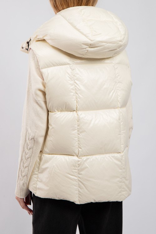 Детали: Женский кремовый жилет на пуху со съемным капюшоном Luzule от Moncler (Монклер). Стеганый дизайн, высокий воротник, съемный капюшон, нашивка с логотипом на груди, боковые карманы на молнии, застежка на молнию и кнопки, классическая длина, наполнитель из микса пуха и пера. Комплектация: фирменные коробка, кофр, подарочный пакет