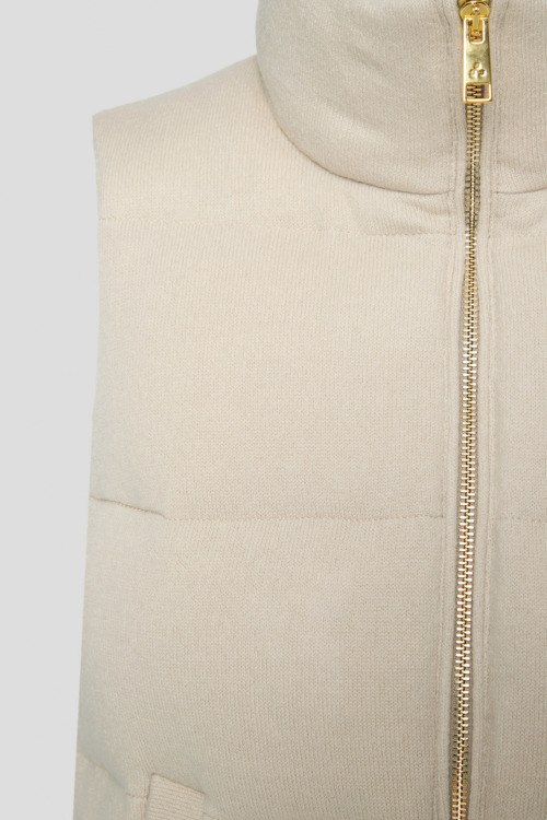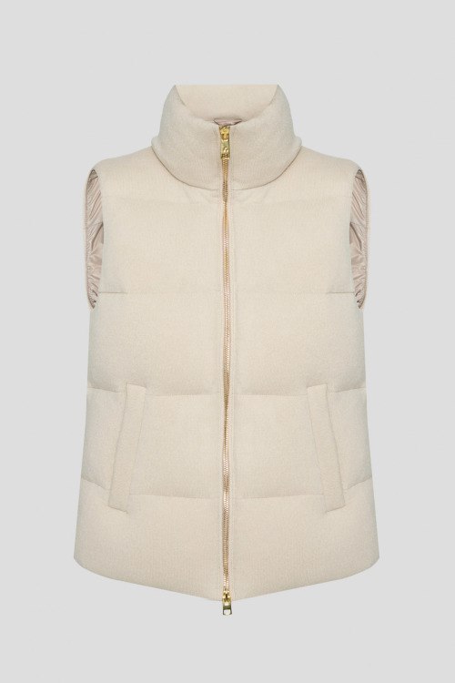 Детали: Женский кремовый шерстяной жилет на пуху от Peuterey (Пьютерей). Высокий воротник, боковые карманы, застежка-молния, наполнитель из микса пуха и пера. Обхват груди: для размера 40 - 94 см, обхват талии: для размера 40 - 94 см, длина изделия по среднему шву спинки от горловины: для размера 40 - 53 см