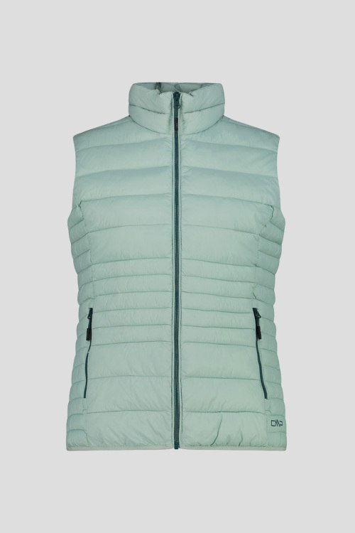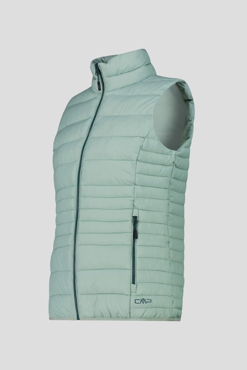 Детали: Женский мятный жилет Vest Sorona Aura Flock от CMP (СМП). Стеганый дизайн, высокий воротник-стойка, застежка на молнию, прорезные карманы на молнии, утепленная модель синтепоном, логотип бренда