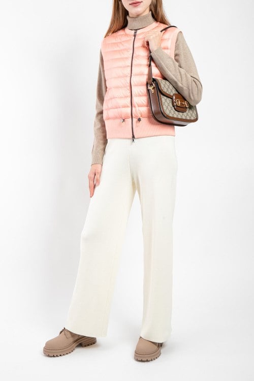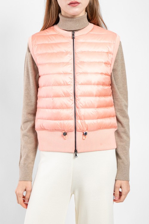 Женский персиковый утепленный жилет Allisa-D1 от Bogner (Богнер). Стеганый дизайн, текстильная спинка, круглый вырез горловины, боковые карманы, застежка-молния, классическая длина, пуховый наполнитель