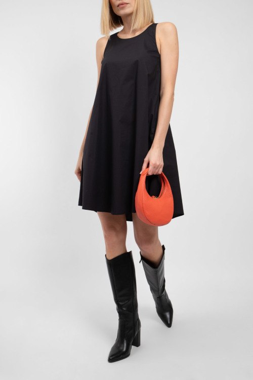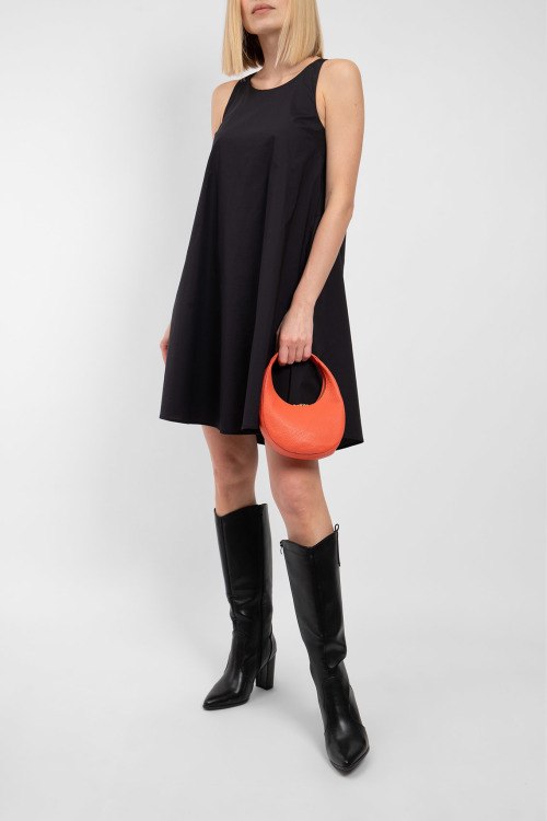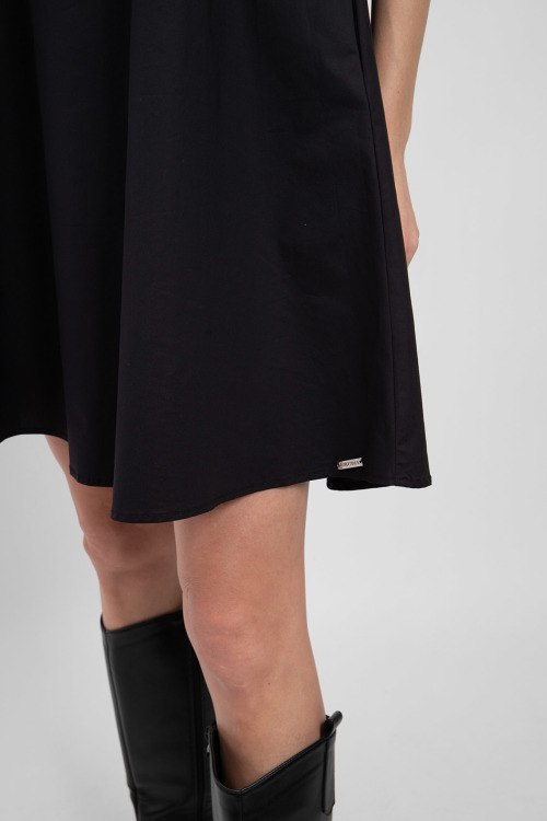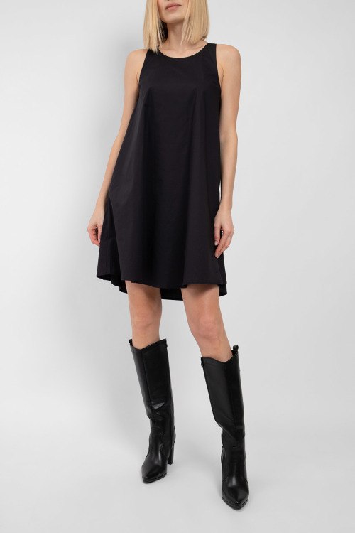 Женское черное платье из хлопкового микса от Fred Mello (Фред Мелло). Короткая длина, расклешенная модель, круглый вырез горловины, без рукавов, патч-лого, удлиненная длина по спинке.
