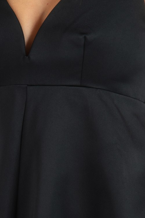 Женское вечернее платье в пол черного цвета от Rochas (Рошас) - известного французского бренда. Модель без рукавов, V-образный верх с декольте, отрезное под грудью и трапециевидный низ. Застегивается сзади на молнию