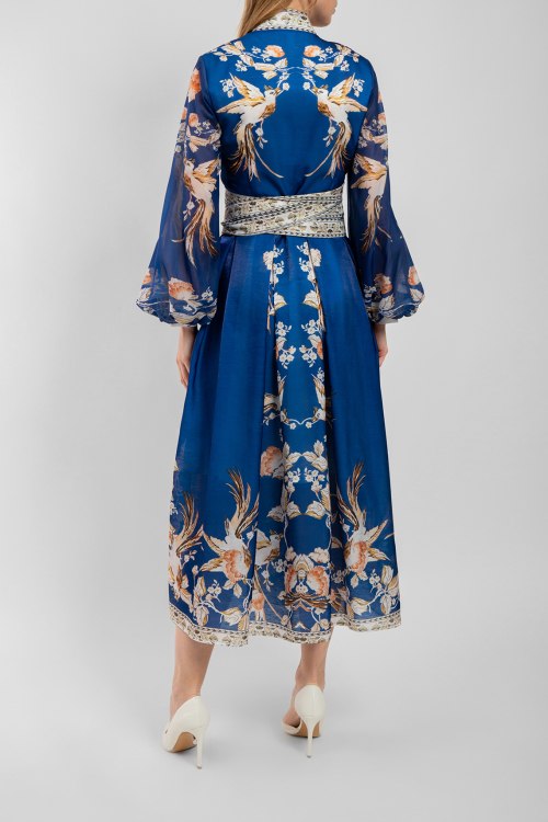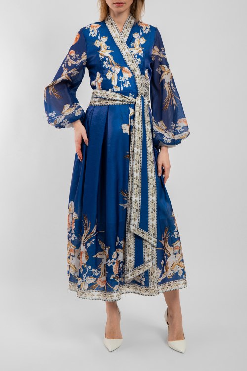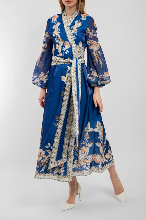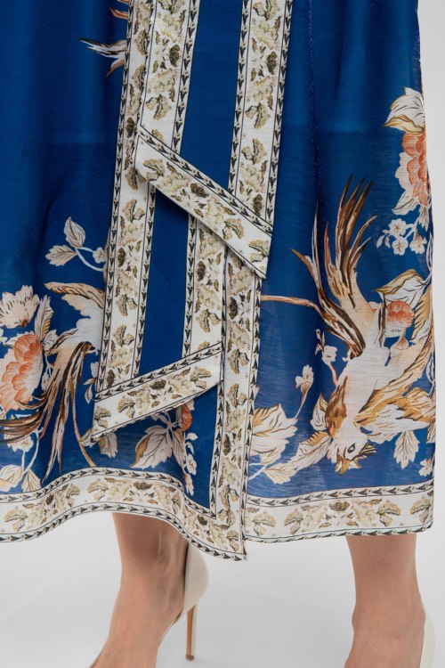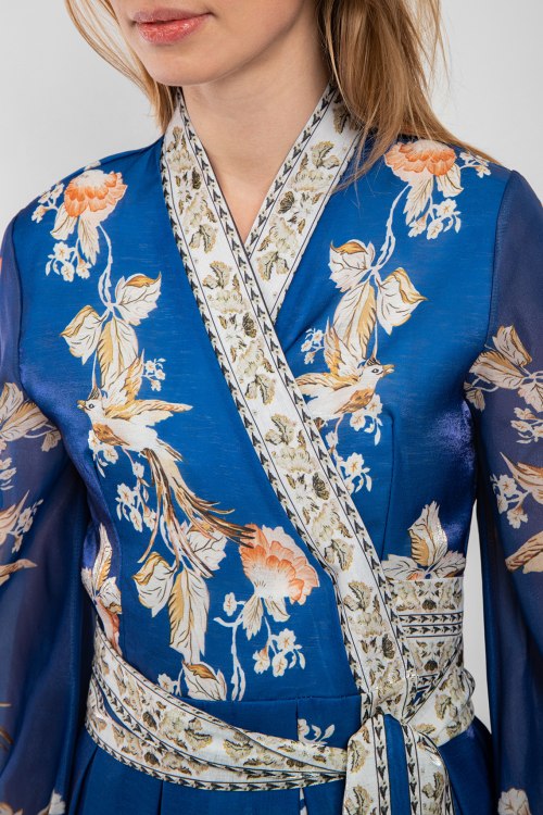 Женское синее платье из хлопкового микса от Buby S (Баби Эс).Длина миди, модель на запах, V-образный вырез горловины, длинные рукава, модель декорирована принтом. Замеры для размера S: длина: 129 см, ширина по груди: 46 см, ширина по талии : 38,5 см, длина рукава по внутреннему шву: 39,5 см, ширина рукава: 18,5.